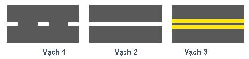 Câu 479: Vạch kẻ đường nào dưới đây là vạch phân chia hai chiều xe chạy (vạch tim đường), xe không được lấn làn, không được đè lên vạch?