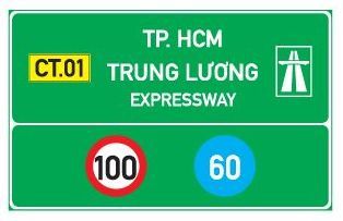 - Tên và ký hiệu đường cao tốc, tốc độ tối đa và tối thiểu khi di chuyển trên cao tốc.