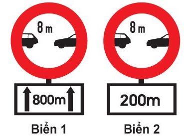 Câu 357: Biển nào báo hiệu khoảng cách thực tế từ nơi đặt biển đến nơi cần cự ly tối thiểu giữa hai xe?
