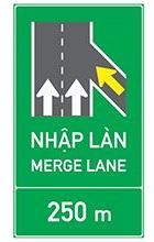 - Chỉ dẫn vị trí nhập làn xe cách 250 m.