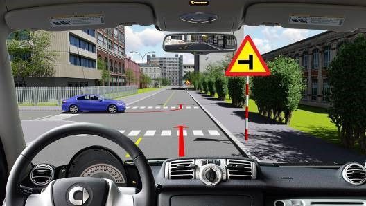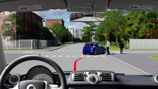 - Giảm tốc độ, để người đi bộ qua đường và rẽ phải trước xe con màu xanh.