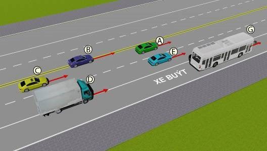 Câu 513: Xe nào vượt đúng quy tắc giao thông?
