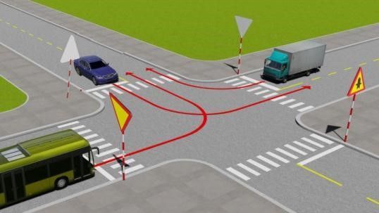 Câu 575: Xe nào phải nhường đường trong trường hợp này?