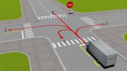 Câu 511: Theo hướng mũi tên, hướng nào xe không được phép đi?