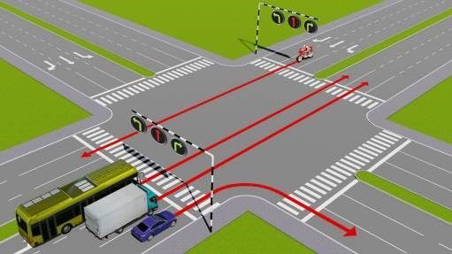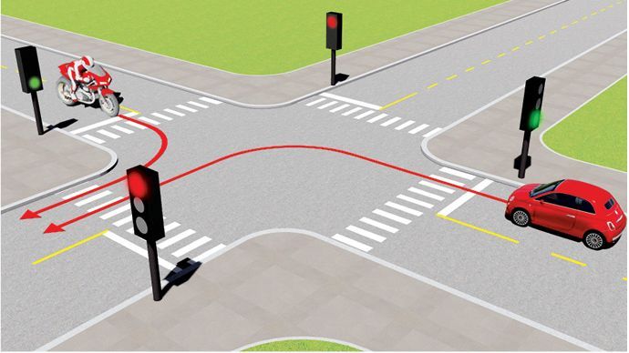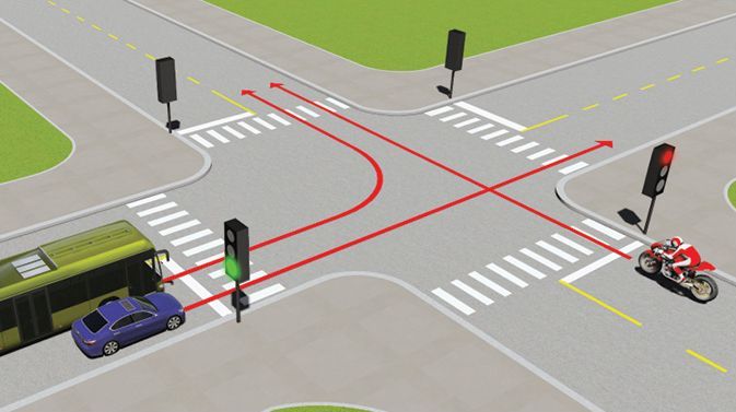 - Dừng lại trước vạch dừng và rẽ phải khi đèn xanh.
