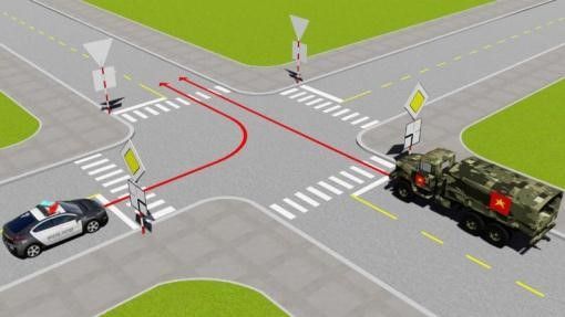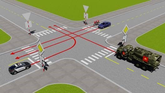 Câu 497: Xe nào phải nhường đường là đúng quy tắc giao thông?