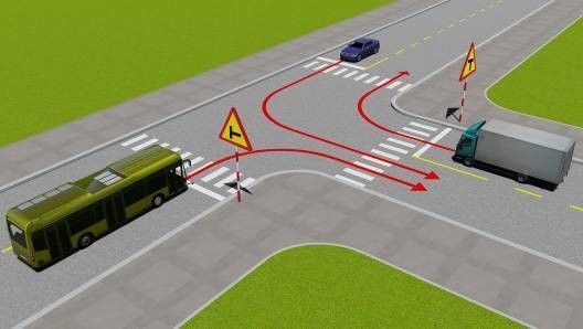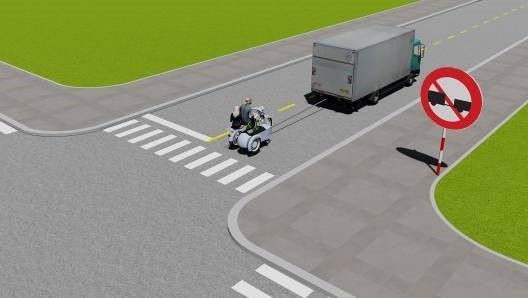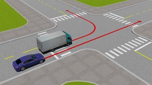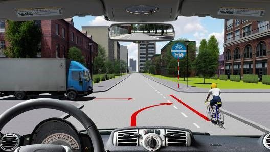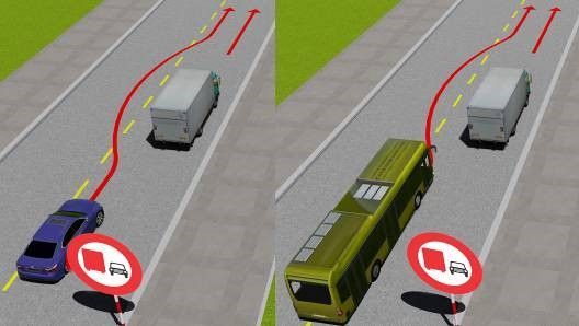 - Giảm tốc độ, rẽ phải sau xe tải và xe đạp.