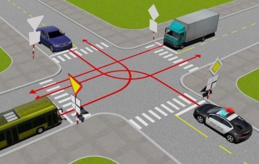 Câu 576: Xe nào phải nhường đường trong trường hợp này?