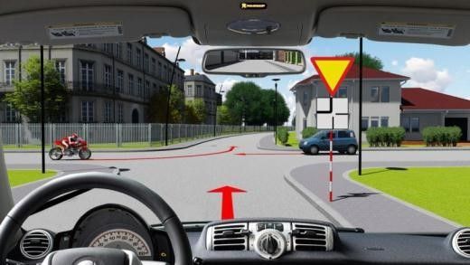 Câu 517: Xe nào được quyền đi trước trong trường hợp này?