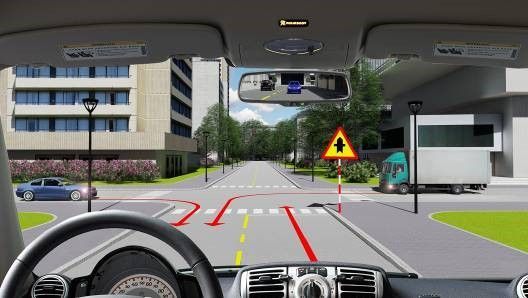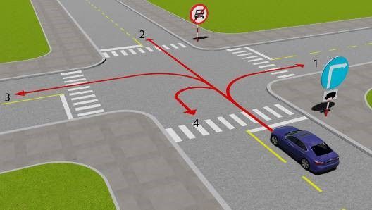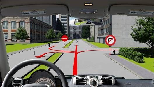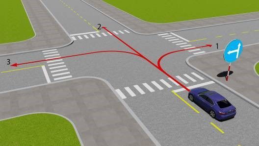 Câu 571: Xe của bạn được đi theo hướng nào trong trường hợp này?