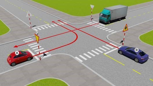Câu 501: Trong trường hợp này xe nào được quyền đi trước?
