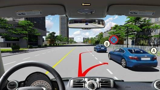 Câu 505: Trong trường hợp này xe nào đỗ vi phạm quy tắc giao thông?