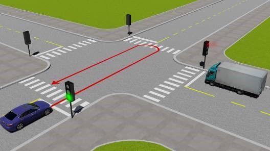 - Dừng lại trước vạch dừng và rẽ trái khi đèn xanh.