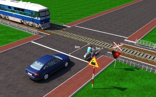 Câu 596: Xe của bạn đang di chuyển gần đến khu vực giao cắt với đường sắt, khi rào chắn đang dịch chuyển, bạn điều khiển xe như thế nào là đứng quy tắc giao thông?