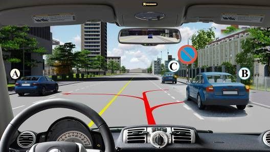 Câu 578: Phía trước có một xe đang lùi vào nơi đỗ, xe con phía trước đang chuyển sang làn đường bên trái, bạn xử lý như thế nào trong trường hợp này?
