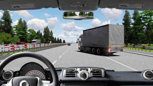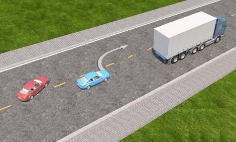 - Phanh xe giảm tốc độ chờ xe tải phía trước chuyển làn đường.