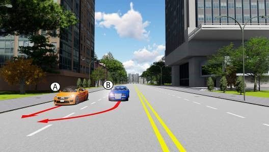 Câu 580: Phía trước có một xe màu xanh đang vượt xe màu vàng trên làn đường của bạn, bạn xử lý như thế nào trong trường hợp này?