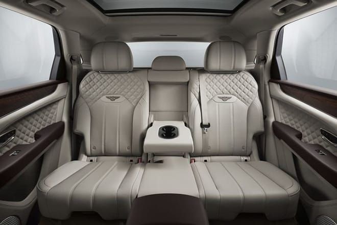 Điểm đặc biệt ở Bentley Bentayga V8 là ghế ngồi với tùy chọn cấu hình 4 chỗ với hàng ghế sau thiết kế dành cho 2 người ngồi riêng biệt ngăn cách bằng bảng điều khiển trung tâm. Cấu hình ba hàng ghế, bảy chỗ ngồi mang đến tính ứng dụng và linh hoạt cao nhất.