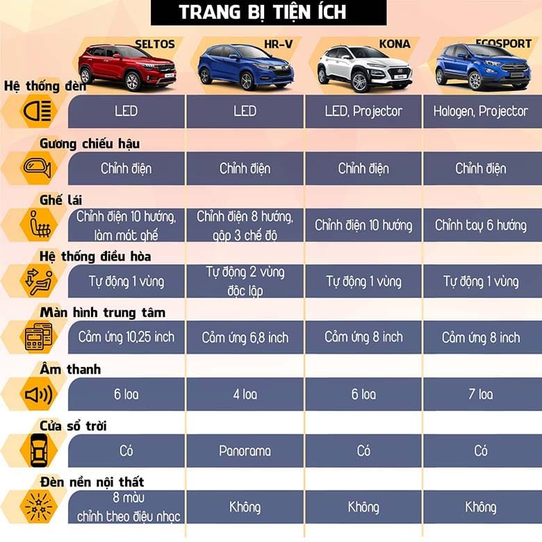 So sánh giá lăn bánh Kia Seltos với HR-V, Kona, Ecosport