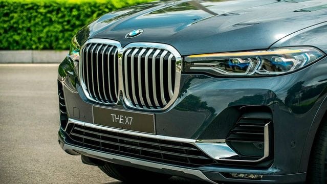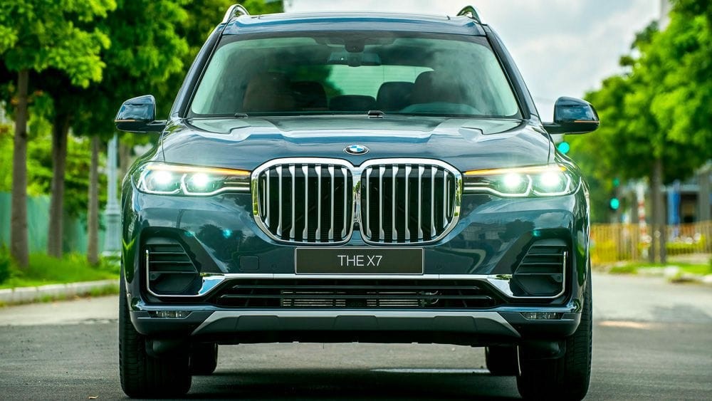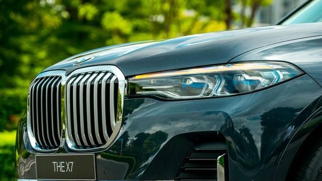 Cùng với đèn pha đôi mỏng kéo dài đến lưới tản nhiệt, chiều rộng của BMW X7 được nhấn mạnh hơn, mang đến một vẻ ngoài không thể nhầm lẫn. BMW X7 tại Việt Nam được trang bị tiêu chuẩn hệ thống đèn pha cao cấp nhất từ BMW – BMW Laserlight, với tính năng thích ứng thông minh – chi tiết chữ X màu xanh lam nằm giữa cụm đèn hình lục giác đôi quen thuộc.