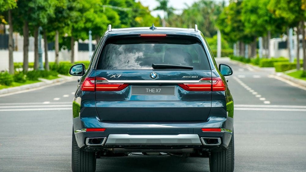 Phần đuôi của BMW X7 mang trên mình nhiệm vụ là nổi bật hơn nữa kích thước đồ sộ của một mẫu SAV hàng đầu. Một thanh chrome nằm ngang nối liền hai bên đèn hậu, với mục đích chính nhấn mạnh hơn chiều rộng của chiếc xe.