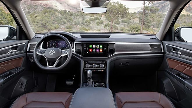 Nội thất của Volkswagen Teramont khá rộng rãi với ba hàng ghế và 7 chỗ ngồi. Một số trang bị đáng chú ý trong xe gồm màn hình kỹ thuật số sau vô-lăng, màn hình trung tâm 8 inch, điều hòa tự động ba vùng, âm thanh 8 loa, cửa sổ trời toàn cảnh...