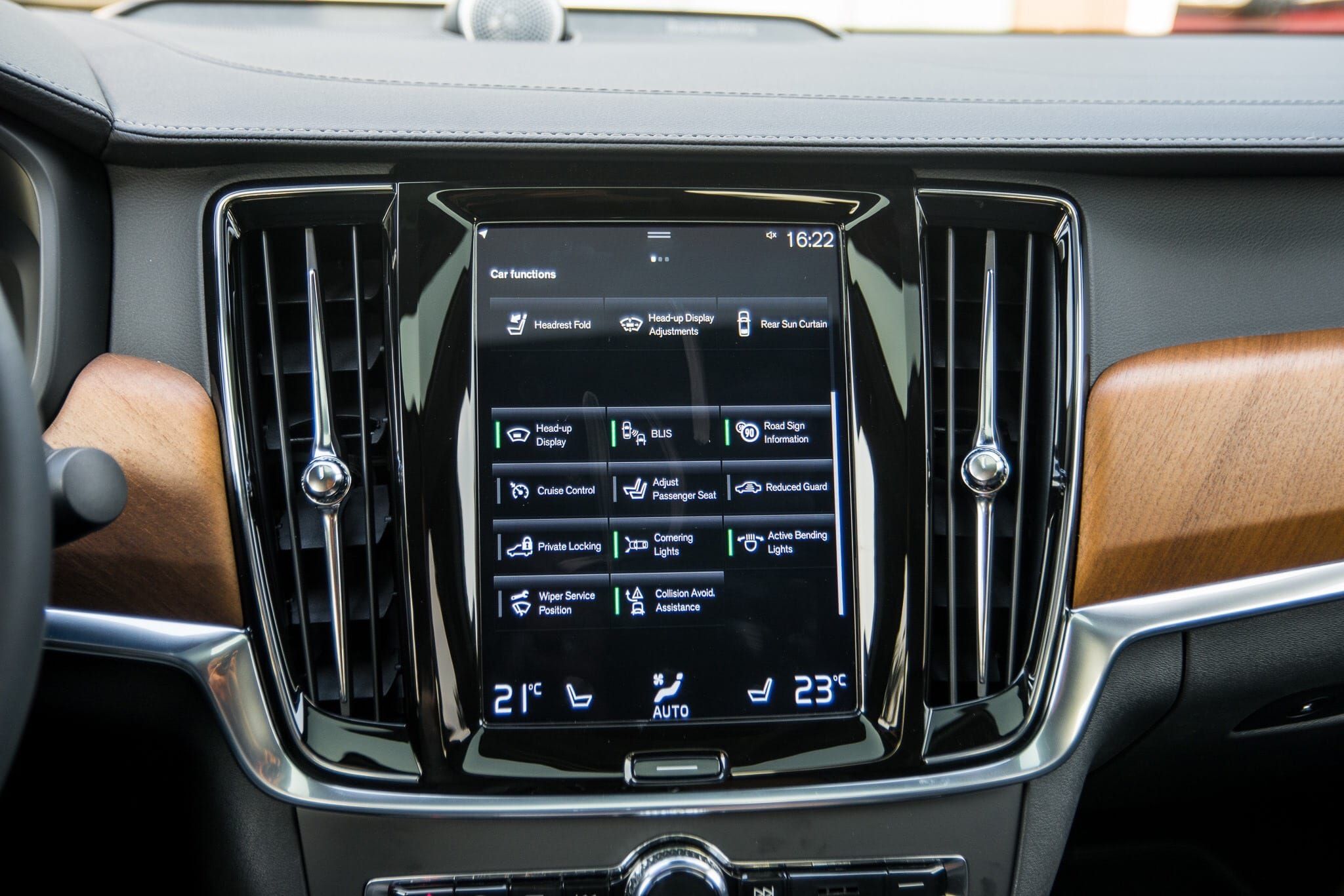 Bảng táp-lô của S90 được thiết kế thông minh với sự tập trung được dồn về phía người lái, ngoài ra còn được kết hợp với viền da cao cấp hoặc ốp gỗ Walnut ở phiên bản Inscription. Ở giữa bảng táp-lô được trang bị màn hình cảm ứng SENSUS 9 inch được tích hợp với Apple CarPlay với mục đích mang đến sự hỗ trợ trên hành trình và động thời giúp bạn điều khiển âm thanh cũng như điều hòa không khí.