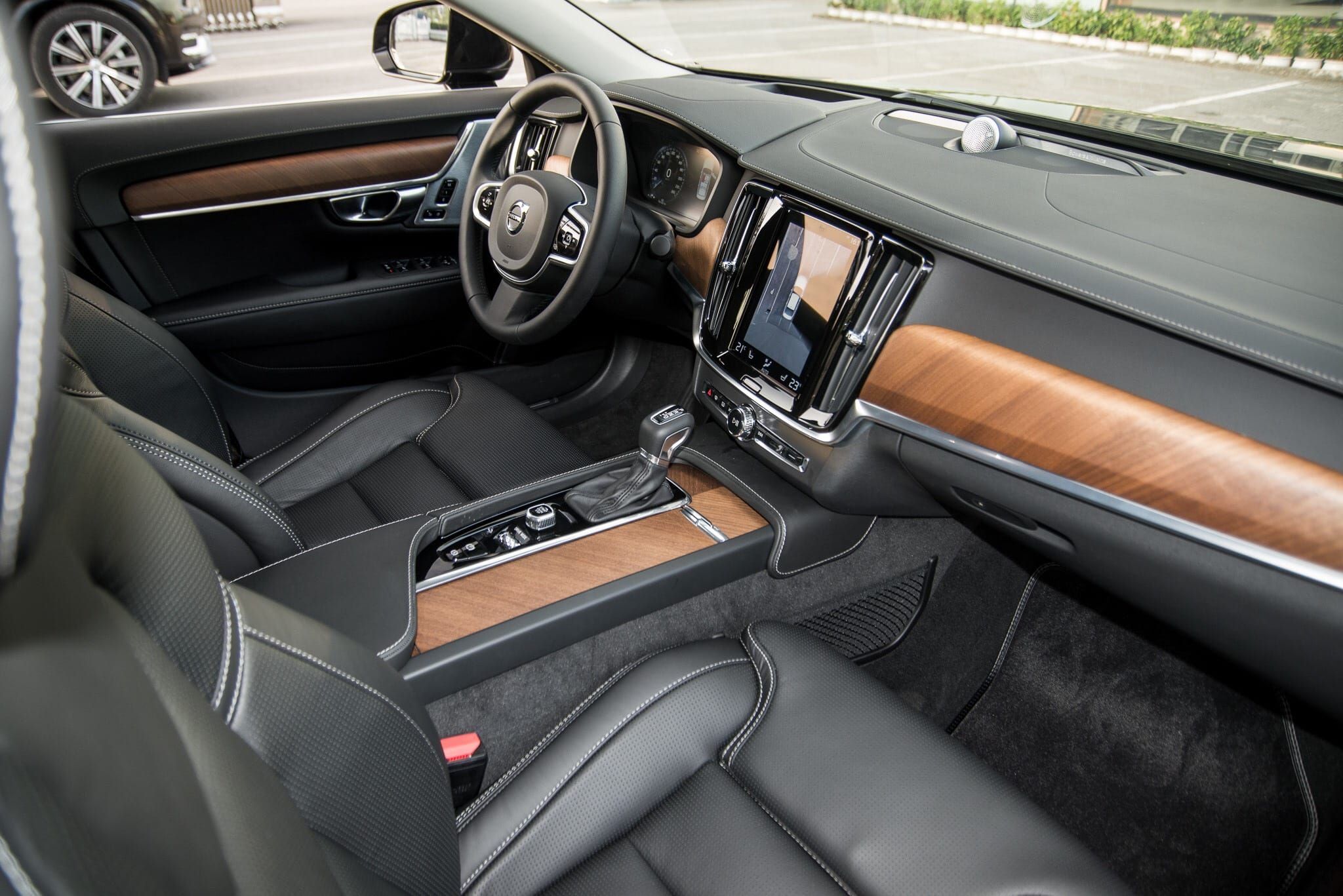 Tầm nhìn khi ngồi trên Volvo S90 2020 là cực kỳ thoải mái, cả tầm nhìn xa và gần. Gương thiết kế trên xe Volvo được đặt lùi lại một chút so với cột A, qua đó tăng tầm quan sát lên tối đa. Đây có thể coi là một trong những ưu thế của xe Volvo S90 nói riêng và xe Volvo nói chung so với phần còn lại.